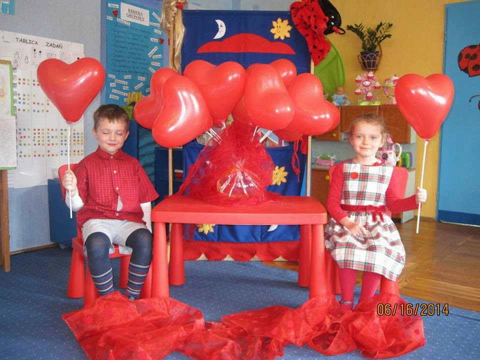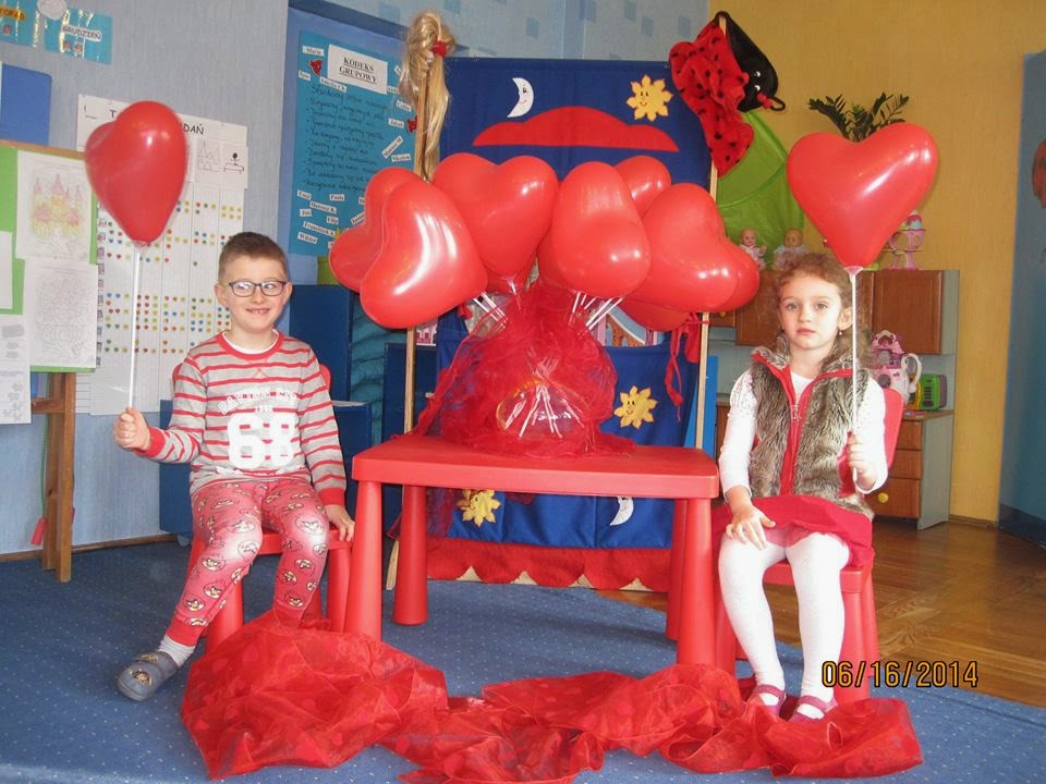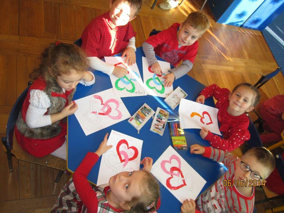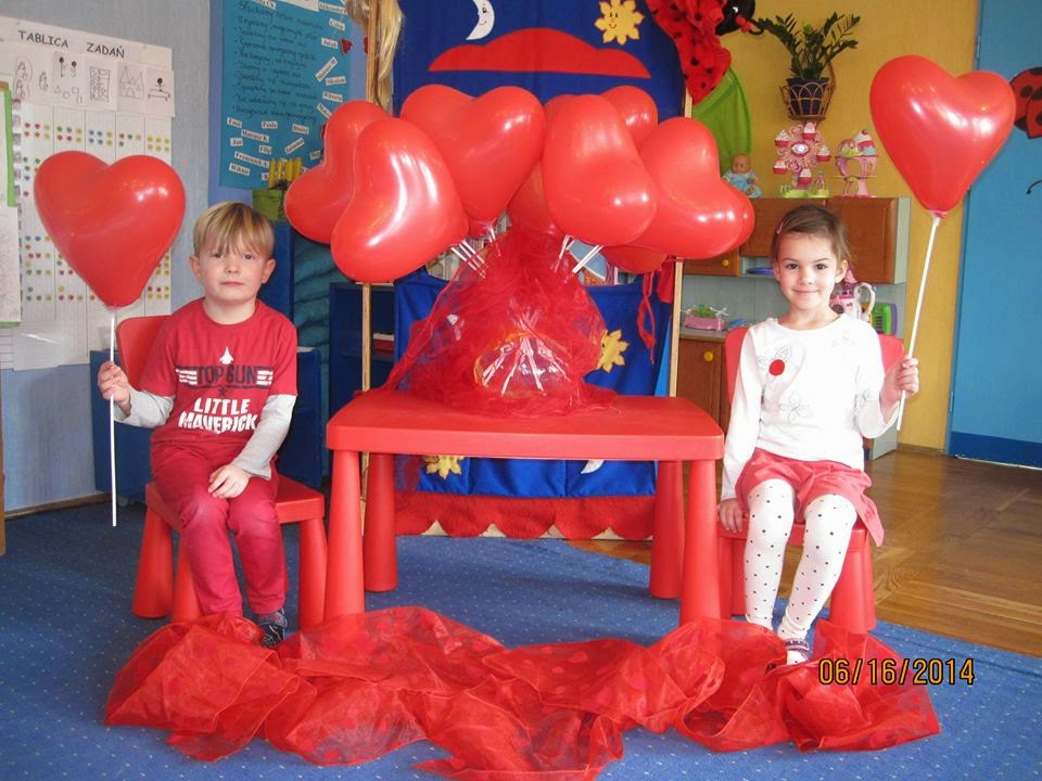 Dzisiaj świętowaliśmy dzień CZERWONY - WALENTYNKI; wszystkie dzieci miały słodkie i wesołe minki. Było bardzo miło, wesoło, zabawowo i niespodziankowo